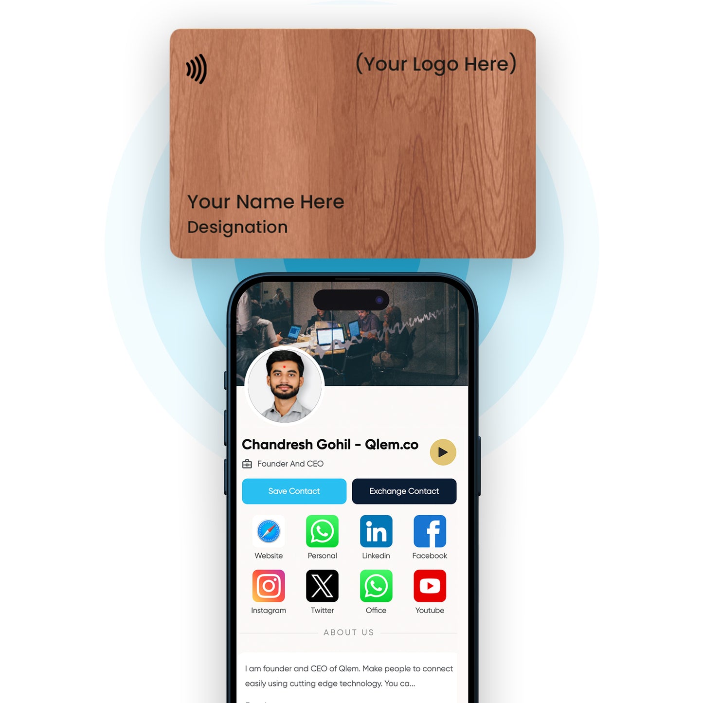 Qlem Digital Business Card, Powered by the Latest Nfc Technology and Crafted From Sustainable Calming Bamboo Wooden Material, Sets a New Benchmark for Modern Professionalism. How Do I Add My Details to the Card? Unlock the Power of Qlem: Order Your Qlem Card, Find Your Login Id and Password Attached With Card, Set Up Your Profile in Minutes, and Dive Into Seamless Connections!